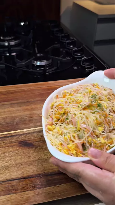 Bifum é um acompanhamento muito bom nesse calorão e fica uma delícia! Vamos aos ingredientes? 1 pacote de 200g de bifum 2 ovos (usei 3 mas achei que foi muito) 100g de presunto cortado fininho 200g (1un em média) de cenoura ralada (pesado antes de drenar) 600g (4un em média) de pepino japonês ralado (pesado antes de drenar) MOLHO: 40ml de azeite 25ml de sumo de limão (cerca de 1 limão) 1 colher de café de óleo de gergelim 50ml de shoyu claro (sabor mais suave e não escurece o bifum) Sal e p