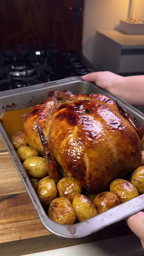 Frango assado sem erro! Vamos aos ingredientes? MARINADA: 1 colher de sopa de alho em pó 1 colher de sopa de cebola em pó 1 colher de sopa de páprica doce 1 colher de sopa de pimenta do reino 1 colher de sopa de sal (cerca de 10g por kilo de carne) 900L de suco 100% de maça @campolargooficial 25ml de azeite DEMAIS INGREDIENTES: 1 frango de 3kg, em média 200g de manteiga com sal MODO DE PREPARO: Limpe o frango, retirando todas as impurezas com Perfex. Prepare a marinada conforme o vídeo. É