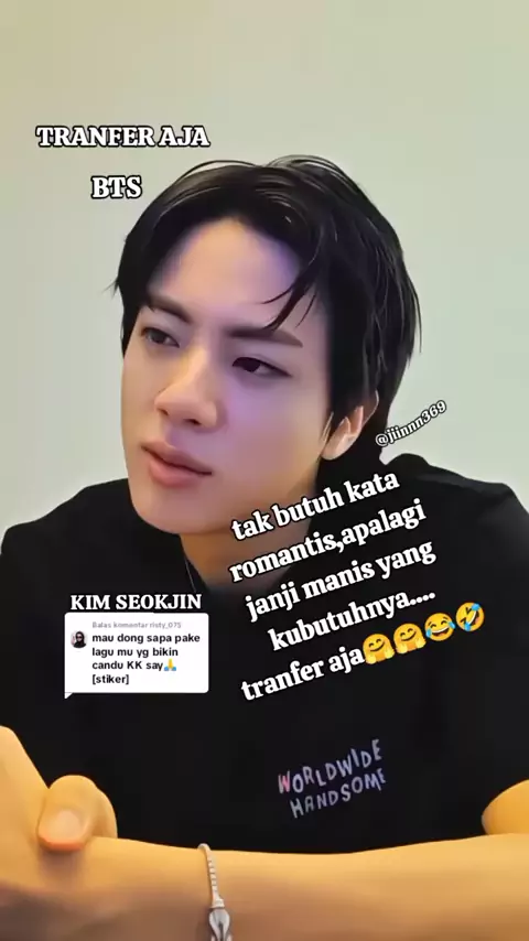 Membalas @risty_075 tak butuh kata romantis, apalagi janji manis yang ku butuhkan..... transferan abang....!!! 😂🤣#tranferaja #kimseokjin #bighit_official_bts #bts #army