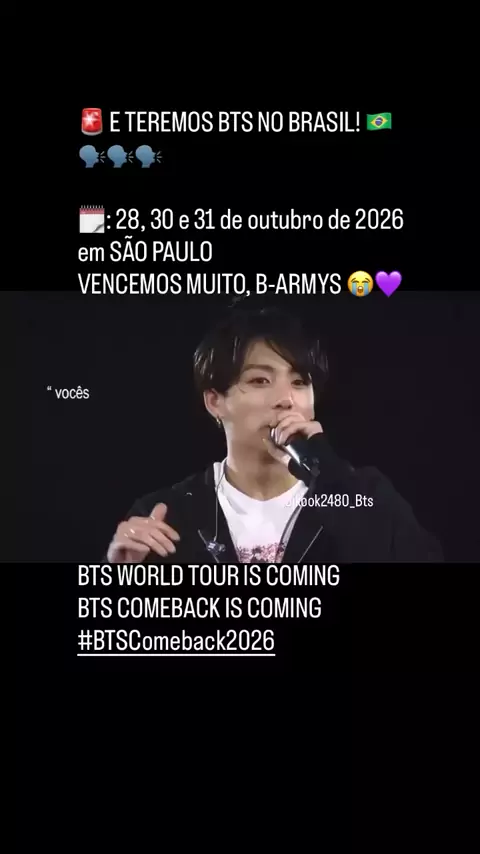 🚨 E TEREMOS BTS NO BRASIL! 🇧🇷🗣️🗣️🗣️ 🗓️: 28, 30 e 31 de outubro de 2026 em SÃO PAULO VENCEMOS MUITO, B-ARMYS 😭💜 BTS WORLD TOUR IS COMING BTS COMEBACK IS COMING #BTSComeback2026
