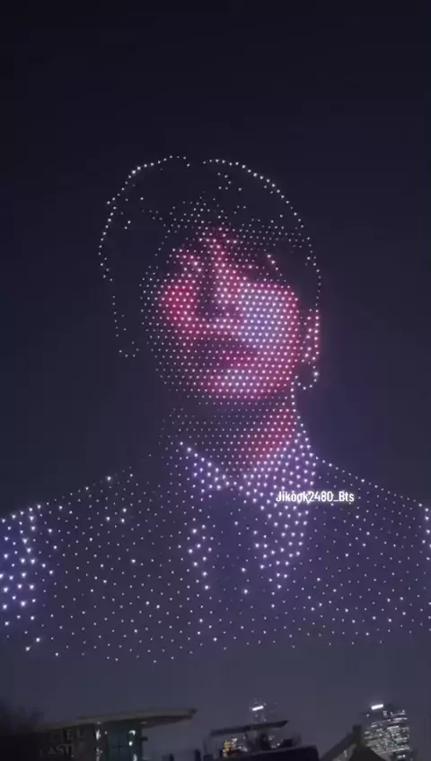 Um espetáculo de luzes com drone para comemorar o regresso do BTS(@bts.bighitofficial) foi realizado no Parque Gimhan River. #BTS_Arirang #BTS_ARIRANG_NETFLIX #swim