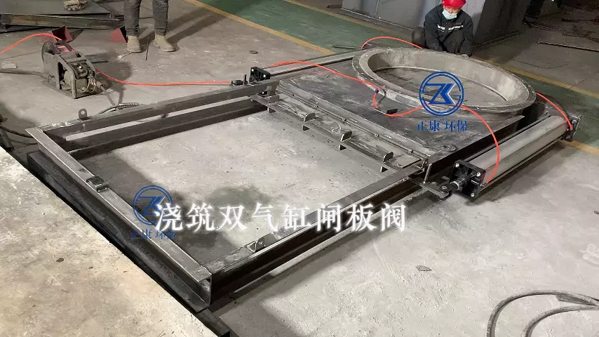 This cast double-cylinder gate valve features high pressure resistance and stable operation#这款浇筑双气缸闸板阀具备耐压性强、运行稳定的特点。