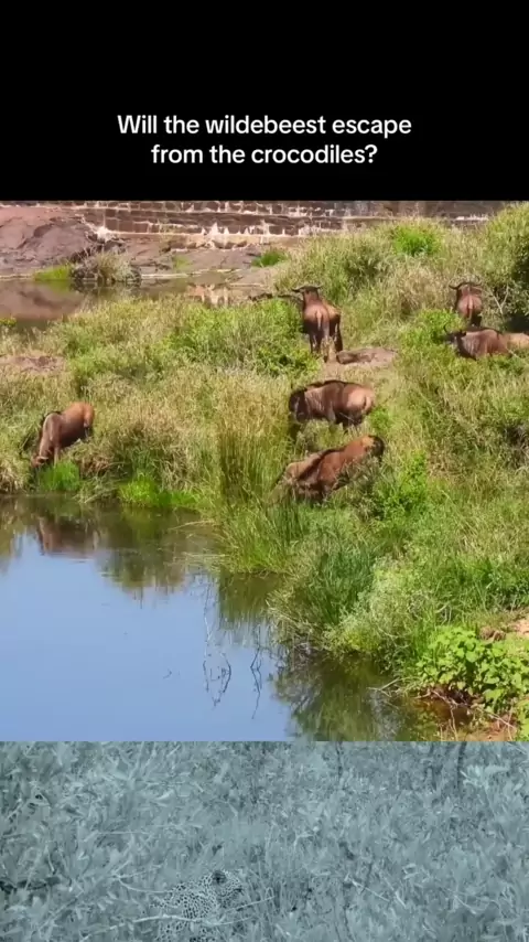 Será que o gnus escapará dos crocodilos? # animal # wildanimals # animals # wildanimal # lion # tiger # zabra # # # crocodile # wildbeest