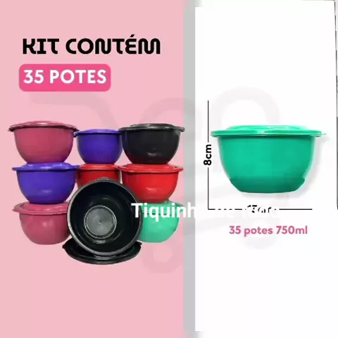Kit 35 Potes Plástico Com Tampas Colorido