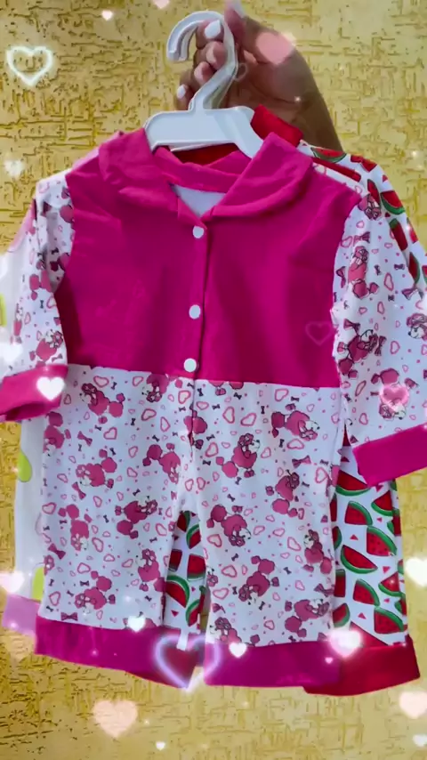 Macacão Estampado de Bebê Menina, possui um charme com gola e botões frontal 👶🏻🩷 #macacão #macacaodebebe #enxovaldebebe #kwaishop