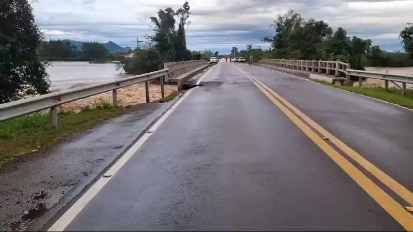 Ponte desaba com as enchentes do RS, em Santa Maria