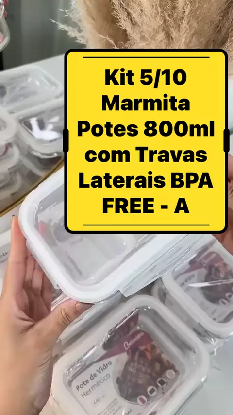 Kit 5/10 Marmita Potes 800ml com Travas Laterais BPA FREE - A #Shoppe #AFazenda17 #blackfridaykwai #BrasilxTunísia