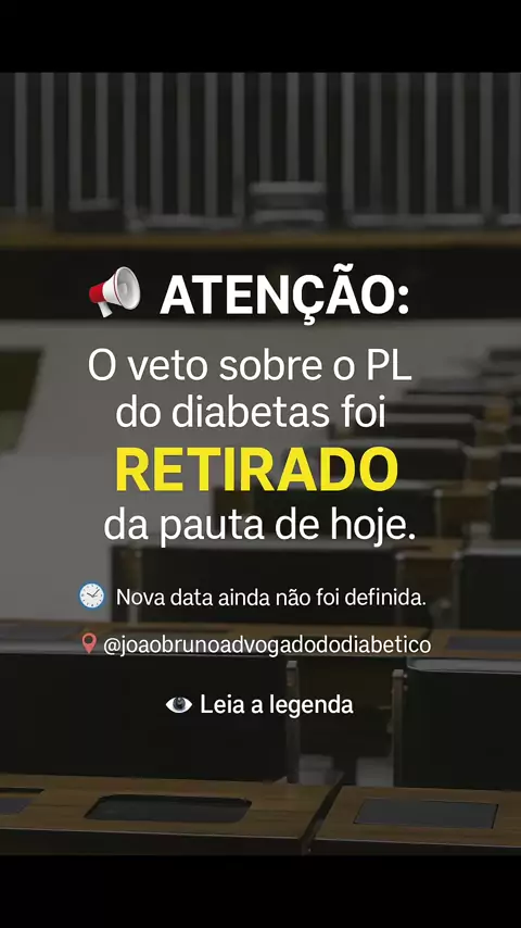 Infelizmente, o Congresso retirou da pauta de hoje a votação que decidiria se o diabetes tipo 1 será reconhecido como deficiência. O Veto 4/2025 (ao PL 2687/2022) seria analisado nesta terça, 17/06. Mas, nas últimas horas, foi retirado da ordem do dia, sem nova data definida. Por que isso importa? Milhares de pessoas com diabetes aguardam essa decisão, que pode abrir portas para inclusão social, cotas, prioridade em concursos e muito mais. #dm1 #diabetes