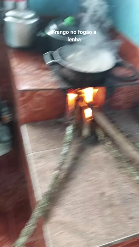 Frango no fogão a lenha .