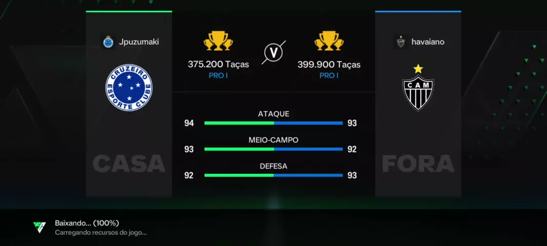 clássico-mg. Cruzeiro x Atlético-mg (FIFA mobile)