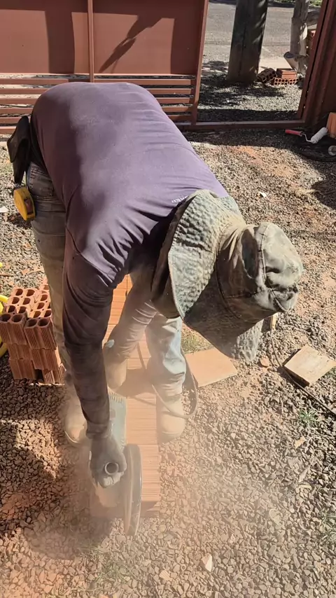 Cortando os tijolos no meio #obra #construção #tijolos