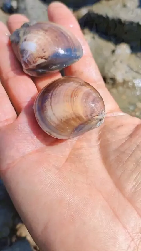 Beachcombing setelah topan benar-benar keren, keong yang dicegat oleh jaring diambil sesuka hati # musim panen pedesaan yang bahagia