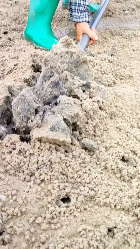 Setelah air surut, nelayan kecil itu menggali pantai Loach untuk melihat cara menggali # HappyRuralHarvest Season