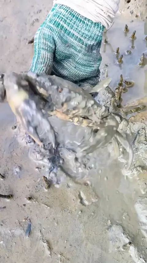 Setelah hujan lebat, kepiting bakau akan pindah, dan nelayan menangkap dua beachcombing # beachcombing
