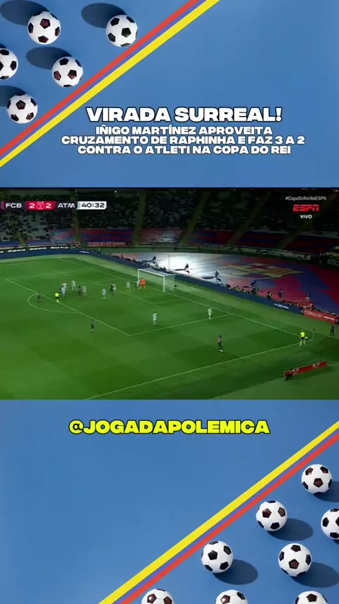 Iñigo Martínez aproveita cruzamento de Raphinha e faz 3 a 2 contra o Atleti na Copa do Rei #Futebol #BarcelonaxAtleticodeMadrid #IñigoMartinez #CopadoRei