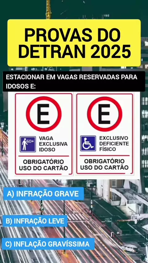 QUESTÃO SOBRE ESTACIONAR EM VAGAS RESERVADAS #quiz #dica #prova #detran #conhecimento