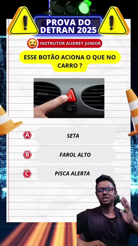 QUESTÃO SOBRE O BOTÃO PISCA ALERTA #quiz #dica #prova #detran #conhecimento