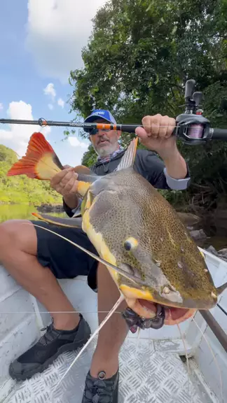 O INCRÍVEL HULK DA AMAZÔNIA! Vara Black Eagle GO 7’0 40lbs Carretilha Titan Pro 2 Linha Vexter X8 50lbs Anzol Super Maruseigo 30 Equipamentos @marine.fishing Pescaria em @amazonia.fishing.lodge #pescaria #johnnyhoffmannoficial #pescaesportiva