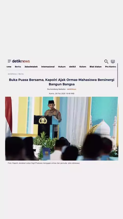 Jakarta - Kapolri Jenderal Listyo Sigit Prabowo menghadiri acara buka puasa bersama sejumlah organisasi masyarakat (ormas), Organisasi Kemasyarakatan Pemuda (OKP) hingga mahasiswa. Kapolri mengajak seluruh elemen bersinergi untuk membangun bangsa menuju Indonesia Emas 2045. "Kegiatan ini menjadi momen silaturahmi yang membawa kemaslahatan buat kita semua. Khususnya dalam sama-sama kita bersatu untuk menjaga Indonesia tercinta, Ibu Pertiwi yang kita cintai demi mewujudkan visi dari bapak Preside...