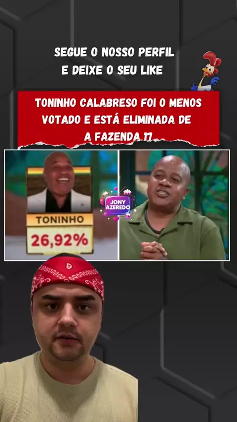 🚨TONINHO CALABRESO ELIMINADO: com 26,92% Toninho está fora de A Fazenda 17. Gostaram ? #afazenda #afazenda17 #bbb #bbb26 #realityshow