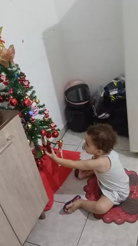 nossa árvore de Natal é pequena mais minha princesa gostou muito dela 🤩😍❤️