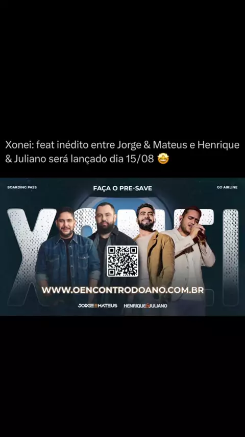 O encontro mais esperado dos últimos tempos! Jorge & Mateus e Henrique & Juliano. Vem aí: Xonei ♥️ 15/08 nos aplicativos de áudio e vídeo! Pre-save: oencontrodoano.com.br #HeJ #JeM #HenriqueeJuliano #JorgeeMateus #lancamento
