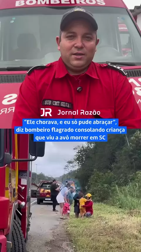 🚨🇧🇷 “Vai ficar tudo bem”: foi o que o subcomandante Paulo Silva, dos Bombeiros Voluntários de Penha, disse ao menino de 6 anos que viu a avó morrer em um capotamento na rodovia Transbeto, no Litoral de SC. A cena comoveu Santa Catarina. O menino chorava desesperado ao lado do corpo da avó, quando foi acolhido com um abraço por Paulo, que falou pela primeira vez sobre o momento com exclusividade ao @jornalrazao e @marisconews. “Também sou pai. Não deu pra segurar. Ele só queria saber se a...
