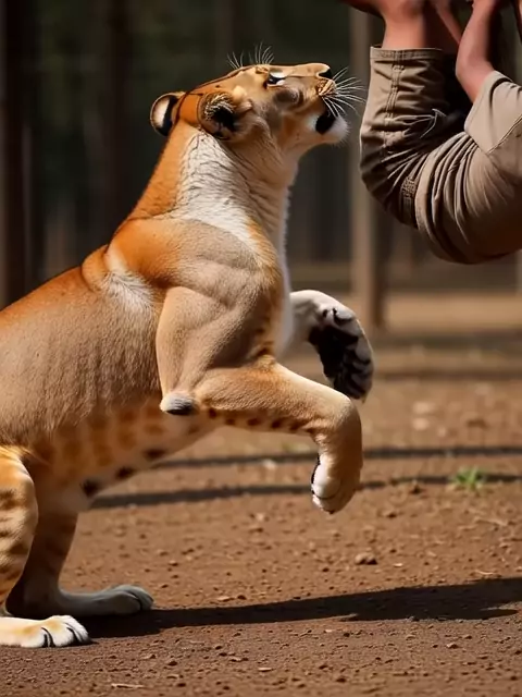leoa ataca jovem pendurado pau