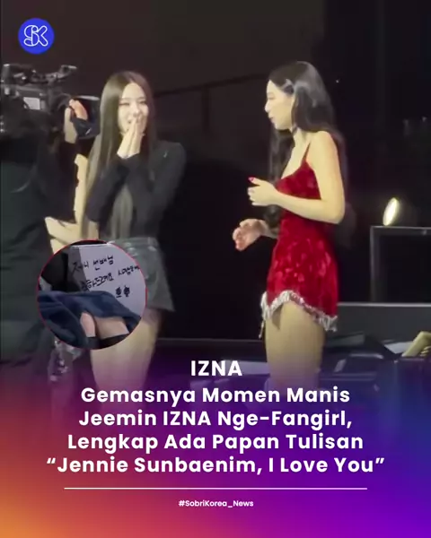 Bang Jeemin IZNA menjadi sorotan penggemar setelah tertangkap kamera kerap melirik ke arah Jennie BLACKPINK. Sama-sama menghadiri acara ‘40th Golden Disc Awards’, Jeemin memperlihatkan tulisan “Selamat Jennie sunbaenim, aku cinta kamu” di kursi khusus artis. Sebelumnya, Jeemin pernah mengungkapkan bahwa Jennie ialah role model-nya, sehingga momen “fangirling” tersebut pun terlihat jelas di kamera. 🛈 Source: various sources on x #SobriKorea #SK_IZNA #IZNA #BangJeemin #