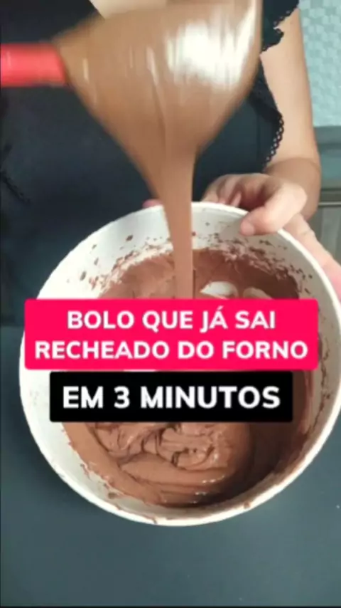 Bolos caseiros em 3 minutos Esse bolo que já sai recheado do forno é uma ótima opção para você vender muito. Além de gostoso, ele é super fácil de fazer.🥰 #boloscaseiros #confeitaria #bolodechocolate
