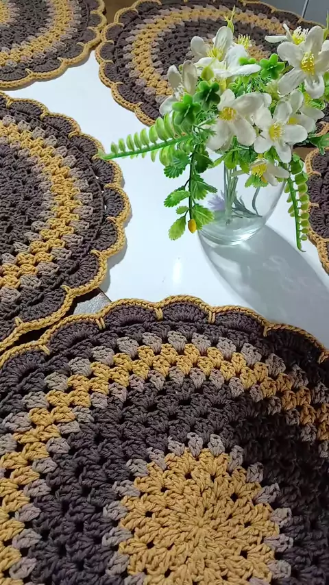 Jogo de sousplat em crochê ideal para quem valoriza cada detalhe na hora de receber. Transforme sua mesa com charme e delicadeza! Clique em ‘seguir’ para não perder nenhuma novidade e marque aquela amiga que ama mesa posta e compartilhe esse charme! ✨️🥰 #sousplatdecroche #mesaposta #sousplat #croche #compartilhe