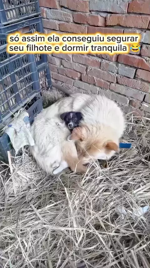 olha como essa cachorra segura seu filhote 😂 #animais #Engracados❤ #cachorra #filhote #pets