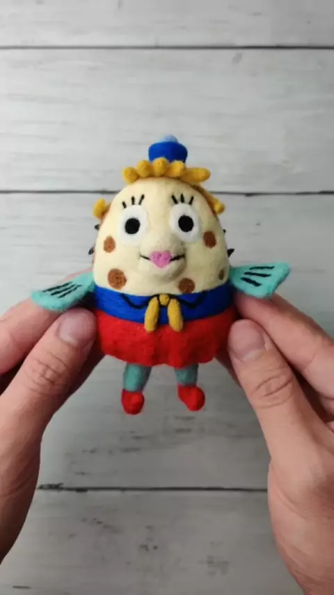 Crafting Mrs. Puff com arte de lã satisfatória # crafts # spongebob # art # satisfying # needlefelting # asmr # artistsof # viral # mrspuff # cute
