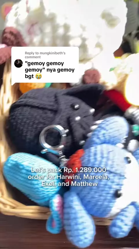 Replying to @mungkinibeth emoy gemoy gemoy! Kita packing lagi yuck utk customer sultan!!😆🤗 inspirasi rajutan lucu lg nih guys! Jgn lupa di save yaaa!!