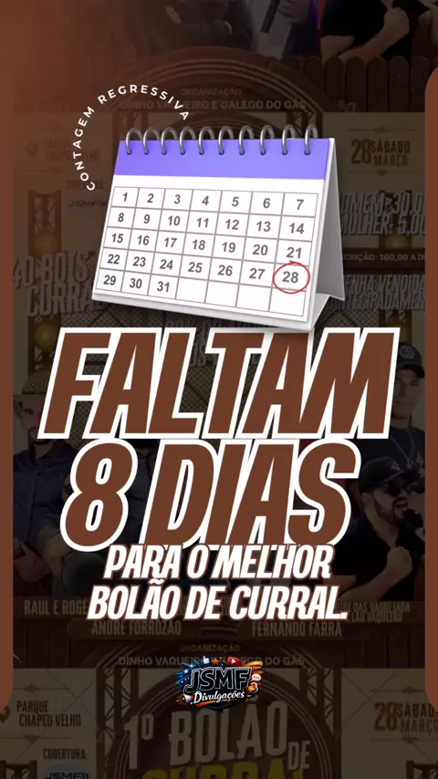 📣 FALTAM SÓ 4 DIAS! 🚀🐂💃🕺 Já é nesta sexta-feira, dia 27, e sábado, 28 de março de 2026, o 1º Bolão de Curral, no Parque Chapéu Velho, em Poço do Boi – Pedra-PE. 🔥🐂 Divulgação: JSMF Divulgações #arcoverde #jsmfarcoverde #jsmfsebastiaocosta #kwai #danças