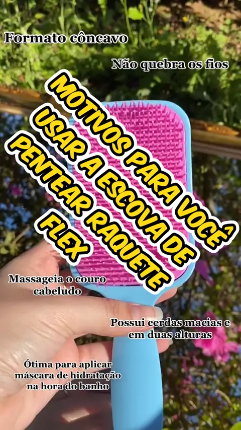 Desembaraçar seus cabelos nunca foi tão fácil com nossa Escova de Pentear Raquete Flex! Projetada para deslizar suavemente pelos fios, ela reduz a quebra e o frizz, deixando seus cabelos mais macios e brilhantes. Ideal para todos os tipos de cabelo, esta escova combina conforto e eficiência em um design ergonômico. Compre agora e aproveite um desconto exclusivo para elevar sua rotina de cuidados capilares! #Beleza #CuidadosCapilares #Conforto #Eficiência