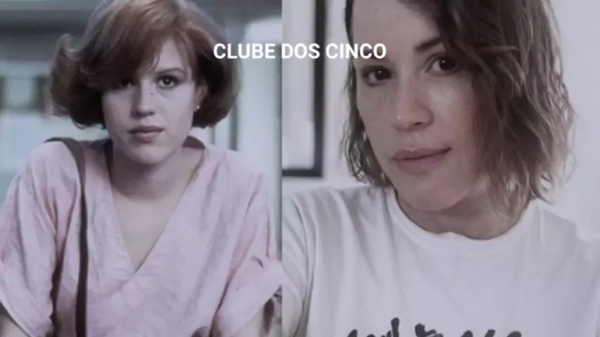Elenco do filme Clube dos Cinco fazendo um comparativo fotográfico de 1985 com agora.
