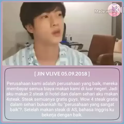 Astatang, dibikin ngakak mulu gue liat live diaπŸ˜‚πŸ˜‚ apa hubungannya pak makan steak jadi lancar ngomong bhs inggris?? Hadue untung sayangπŸ˜‚πŸ˜… . . -sin🐱 -- πŸ’ŸοΈBudayakan Like, Coment dan Tag temen kalian ❗Repost? Cr/Tag Please βœ”Stalk disini, Follow Β»@infobts.ina2Β« . #BTS #bangtanboys #bangtansonyeondan #kimnamjoon #kimseokjin #minyoongi #junghoseok #parkjimin #kimtaehyung #jeonjungkook #λ°©νƒ„μ†ŒλŽλ‹¨ #faktabts #btsid #btsindonesia #btscomeback #btsfunny #kpopmemes #bangtan #memebts #videobts #fangirl #i...