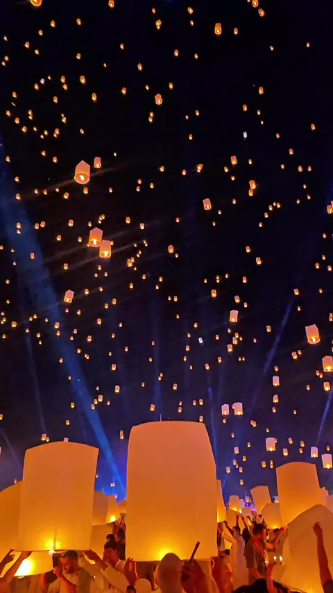 🏮✨ O céu da Tailândia se encheu de luz e emoção no #FestivalDasLanternas2025 — um espetáculo inesquecível! 💫 #Tailândia #MagiaNoAr