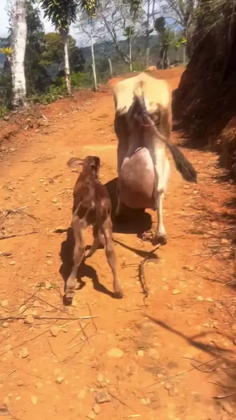 Será que vai dá leite meu povo!🍼🙏🐄🌱 #bomdia #vidanocampo #vacaleiteira #bezerro #vacacrianova