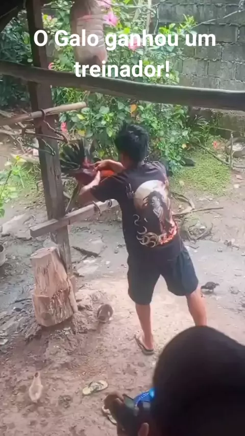 E o galo que ganhou um treinador só pra ele. 🤣🤣 #pet #galo #viral