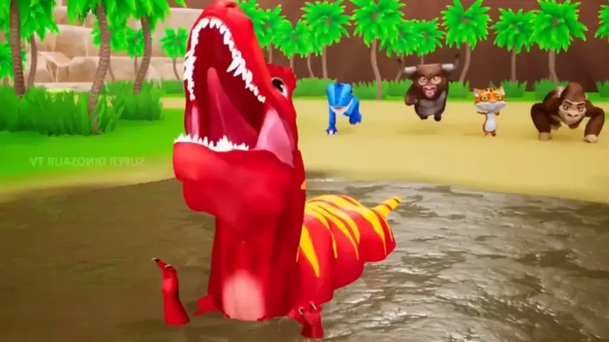 O Tiranossauro Rex foi perseguido e interceptado e acidentalmente caiu no pântano. Venha ver # Dinossauro Rex # Triceratops e Tiranossauro Rex # Desenho infantil