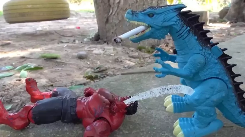O homem de rosto vermelho tem popular em sua cabeça, e o dinossauro colocou o popular, o que faz a pessoa rir e chorar # Dinossauro Rex # Brinquedo de Dinossauro # Desenho animado de Dinossauro