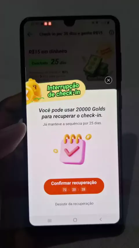 check-in do dinheiro