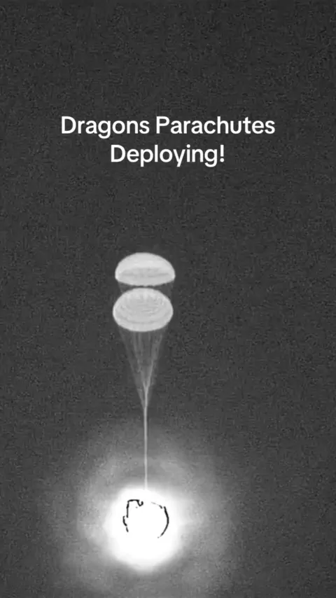 Os quatro paraquedas principais da Dragon foram implantados! # SpaceX # Polaris # Crewdragon # space # polarisdawn # spacexlaunch # rocketlaunch # starliner # EVA # Falcon9 # dragon #