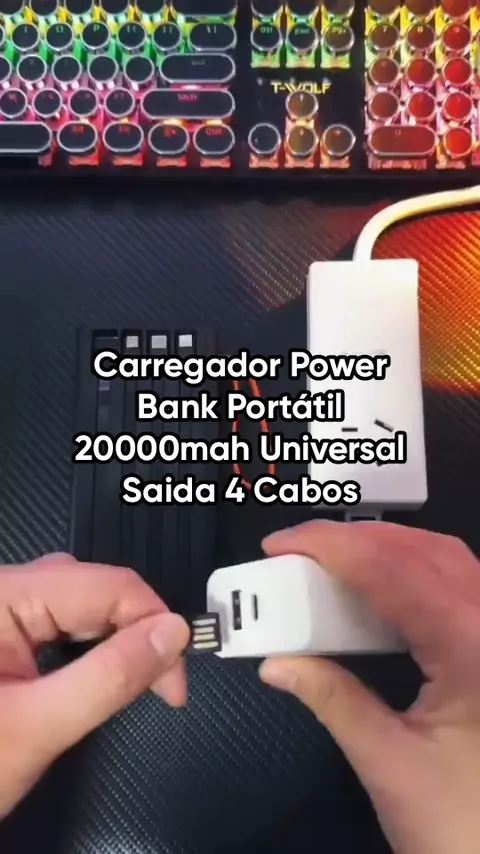 Carregador Power Bank Portátil 20000mah Universal Saida 4 Cabos #stitch