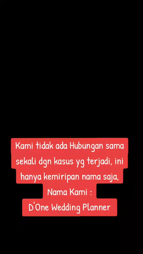 D'One Wedding Planner berbeda dengan wo One Wedding Planner asal Cimahi Bandung, tidak ada sangkut paut, cabang atau pun kerjasama. D'One Wedding Planner domisili Bekasi-Jakarta dan tidak membuka cabang di mana pun.