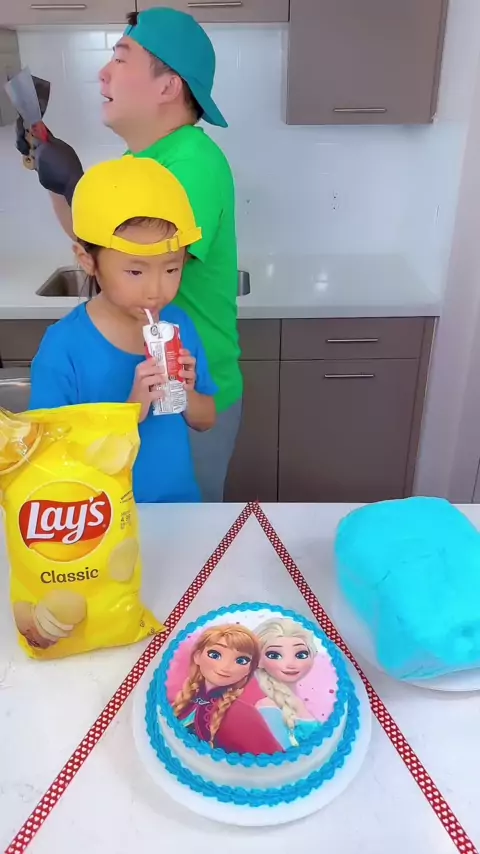 Frozen cake vs Blue cotton candy ice cream challenge!🍹#frozen#funny by Ethan Funny Family