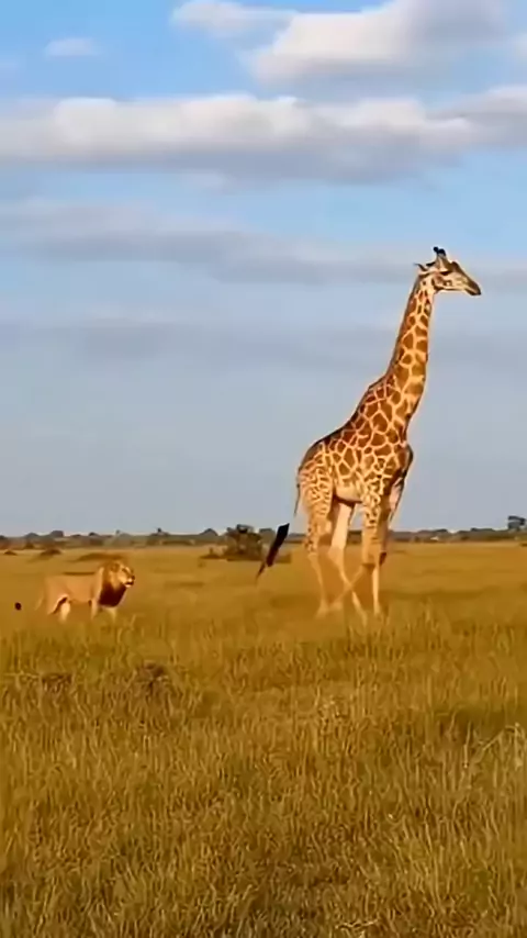 A wild moment on the African savannah! A bold cheetah balances on a giraffe while a lion watches below, creating a rare and thrilling scene of nature’s unexpected drama. True wildlife magic captured in perfect timing. A reminder of how incredible the animal kingdom truly is. #giraffe #lion #cheetah