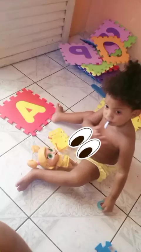 nem a comida da boneca escapa kkkk #criançafeliz #MinhaFilha #kwainobbb #Brincadeiradecriança